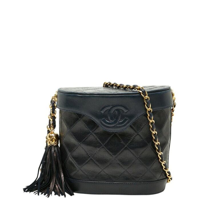 シャネル マトラッセ ココマーク タッセル チェーン ショルダーバッグ ネイビー ラムスキン レディース CHANEL 【中古】