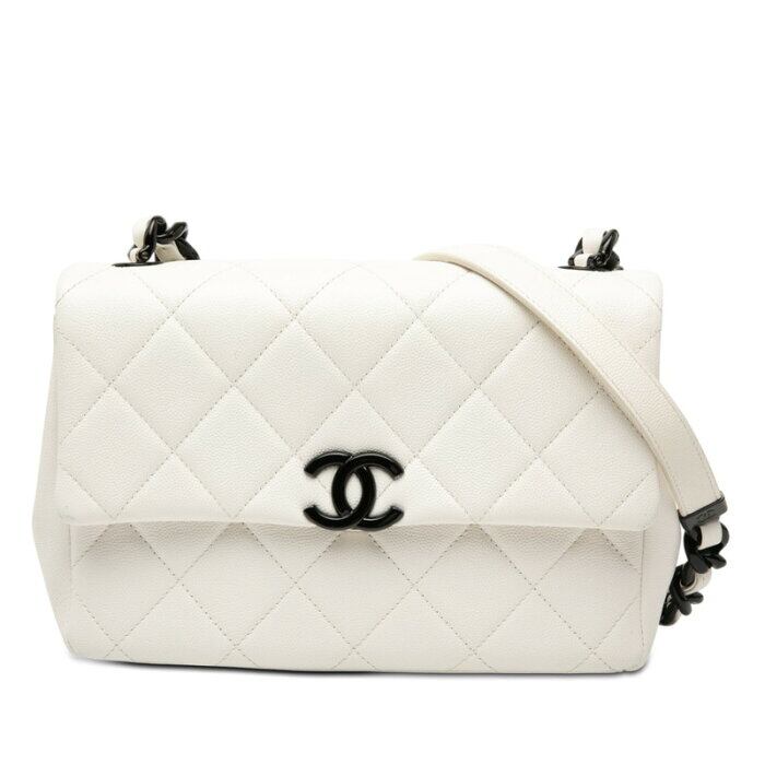 シャネル マトラッセ ココマーク クラシック フラップバッグ チェーン ショルダーバッグ AS2302 ホワイト キャビアスキン レディース CHANEL 【中古】