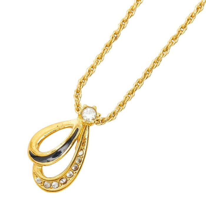 ディオール ヴィンテージ ドロップ チェーン ペンダント ネックレス ゴールド メッキ エナメル ラインストーン レディース Dior 【中古】