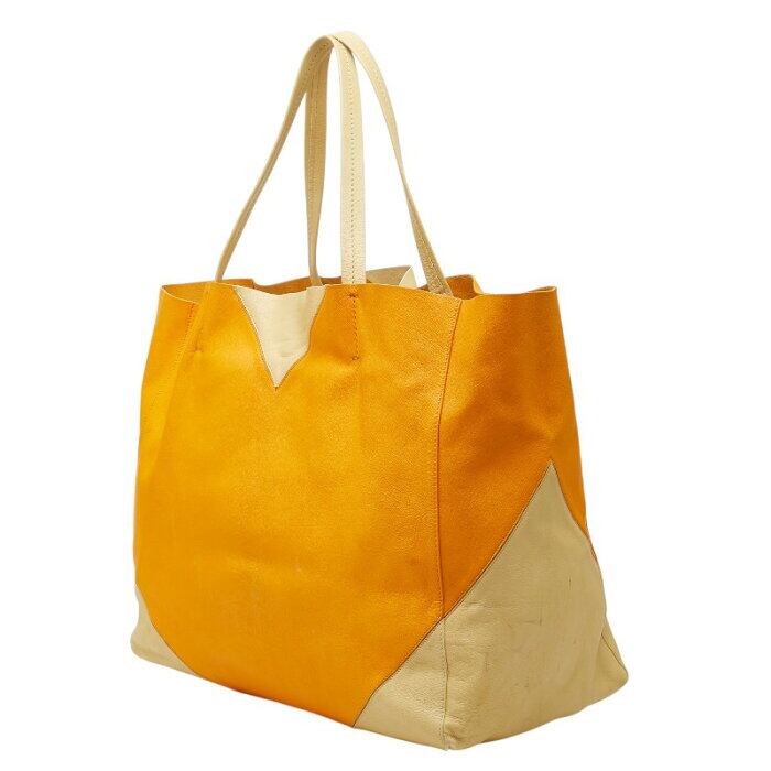セリーヌ ホリゾンタル カバ ショルダーバッグ トートバッグ イエロー ベージュ レザー レディース CELINE 【中古】