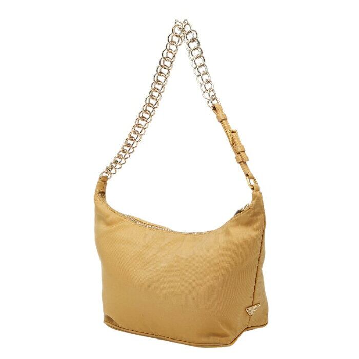 プラダ ロゴ チェーン ワンショルダーバッグ ベージュ ナイロン レザー レディース PRADA 【中古】