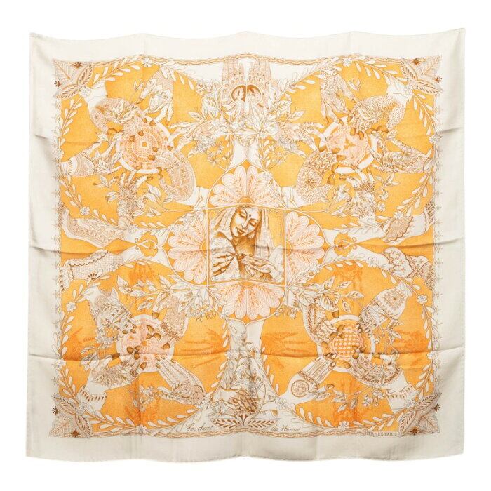 エルメス カレ90 les chants du henne ヘンナの歌 スカーフ ベージュ マルチカラー シルク レディース HERMES 【中古】