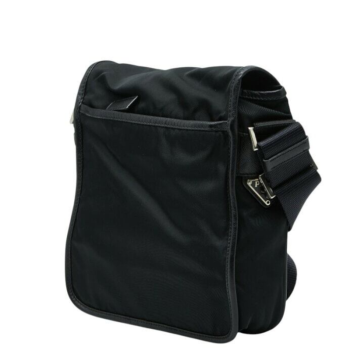 プラダ 三角ロゴプレート 斜め掛け ショルダーバッグ ブラック ナイロン レザー レディース PRADA 【中古】