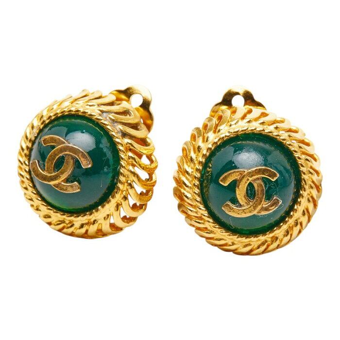 シャネル ココマーク ヴィンテージ ラウンド丸形 イヤリング ゴールド グリーン ラインストーン メッキ レディース CHANEL 【中古】