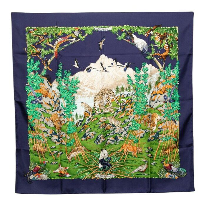 エルメス カレ90 SICHUAN 四川省 スカーフ ネイビー マルチカラー シルク レディース HERMES 【中古】
