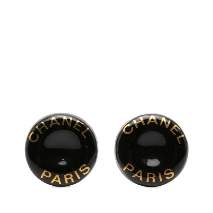 シャネル ロゴ イヤリング ブラック ゴールド エナメル メタル レディース CHANEL 【中古】