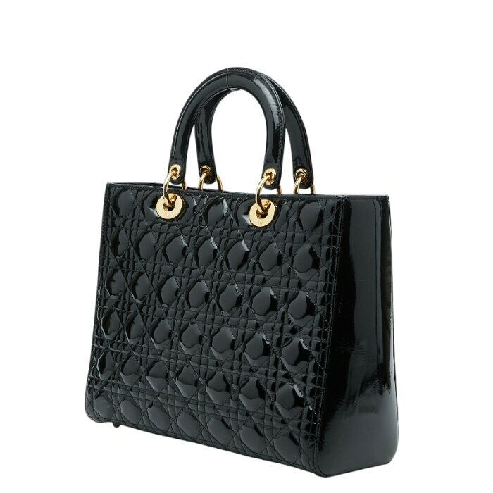 ディオール レディディオール カナージュ ハンドバッグ ショルダーバッグ 肩掛け 2WAY ブラック パテントレザー レディース Dior 【中古】