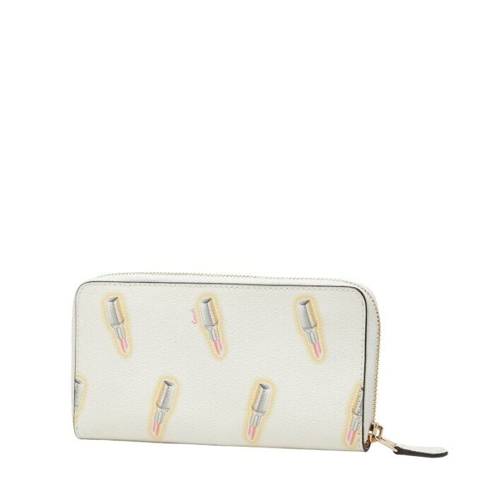 コーチ ラウンドファスナー 長財布 リップスティック 口紅 プリント C3313 ホワイト アイボリー マルチカラー PVC レザー レディース COACH 【中古】