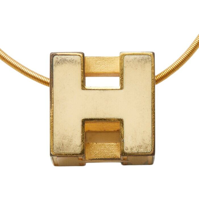 エルメス カージュドアッシュ Hキューブ ネックレス ゴールド ベージュ メッキ レディース HERMES 【中古】
