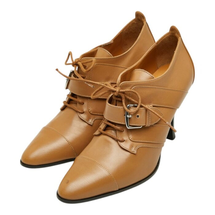 エルメス - ストラップ レースアップ アンクル ブーティー サイズ35 1/2 ブラウン レザー レディース HERMES 【中古】