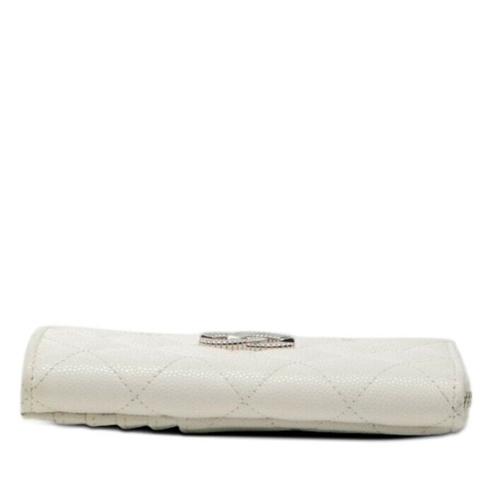 シャネル ココマーク マトラッセ カードケース コインケース フラグメントケース ホワイト キャビアスキン レディース CHANEL 【中古】