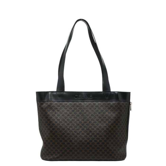 セリーヌ マカダム トートバッグ MC96 ブラック ブラウン PVC レザー レディース CELINE 【中古】
