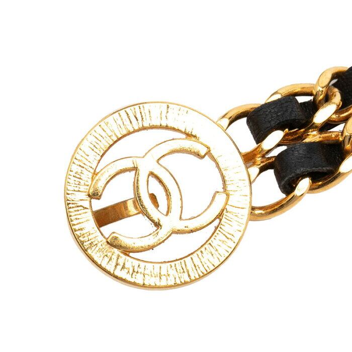 シャネル ココマーク チェーンベルト 2連 ゴールド ブラック メッキ レザー レディース CHANEL 【中古】