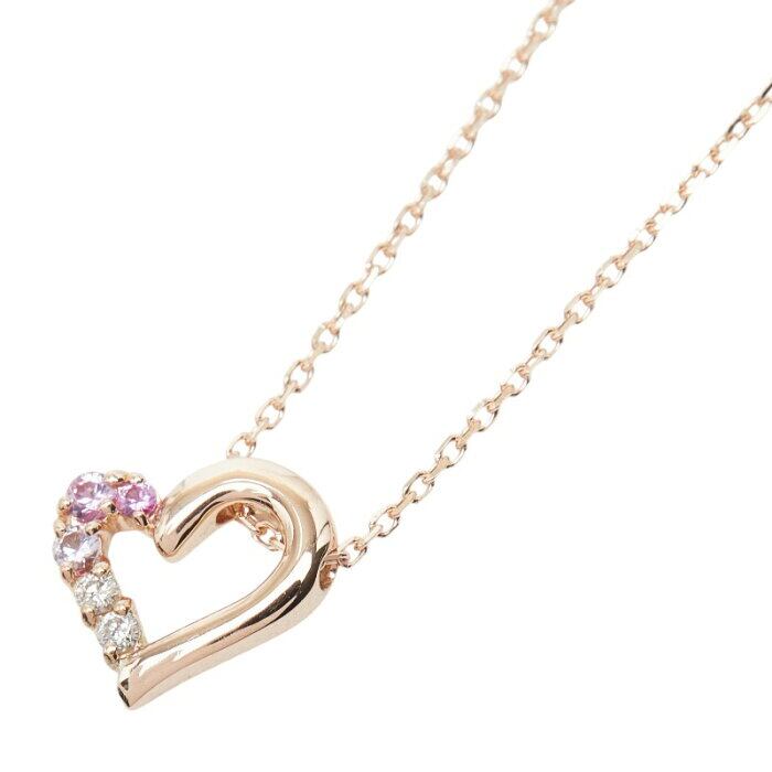 ヨンドシー K10PG ピンクゴールド サファイア ダイヤ ハートモチーフ ペンダント ネックレス レディース 4℃ 【中古】