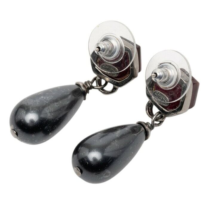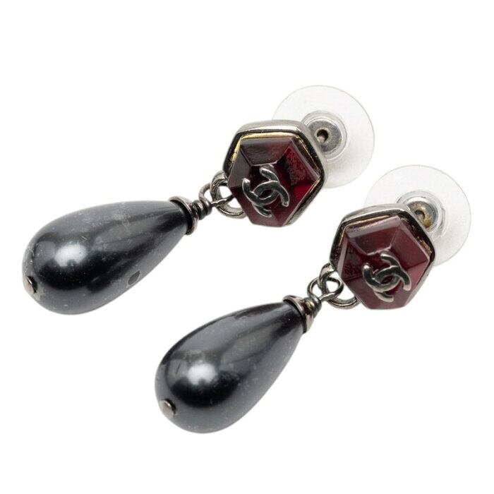 シャネル ココマーク ティアドロップ 水滴 ピアス ブラック ラインストーン メタル フェイクパール レディース CHANEL 【中古】