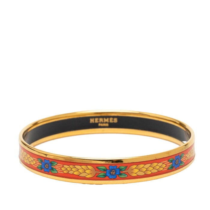 エルメス エマイユ PM フラワー 花葉 モチーフ バングル ゴールド レッド 赤 メッキ 七宝焼き レディース HERMES 【中古】