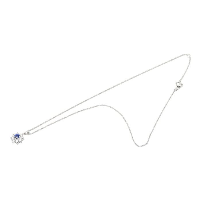 Pt900 プラチナ Pt850 プラチナ サファイア0.53ct ダイヤ0.63ct フラワーモチーフ ペンダント ネックレス レディース 【中古】