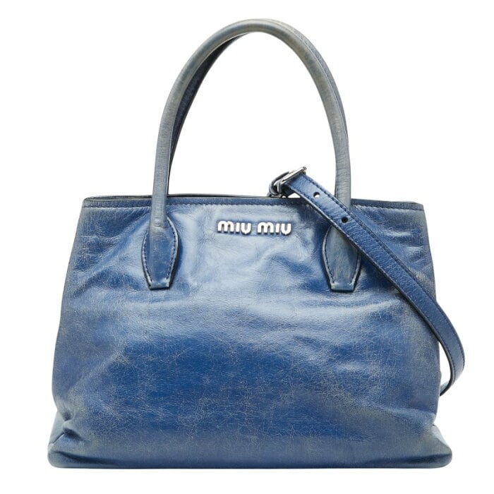 ミュウミュウ ハンドバッグ ショルダーバッグ 2WAY RN1069 ブルー レザー レディース MIUMIU 【中古】