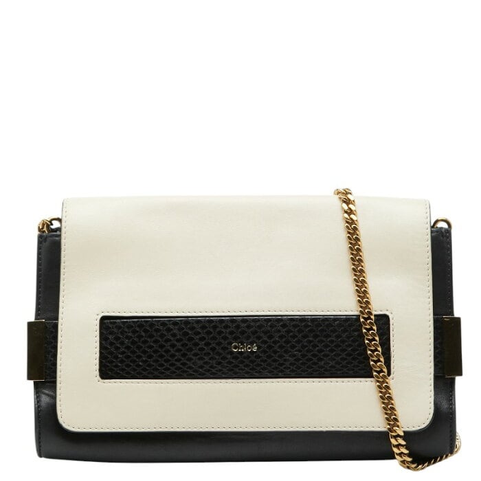 クロエ エル チェーンショルダーバッグ オフホワイト ブラック レザー パイソン レディース Chloe 【中古】