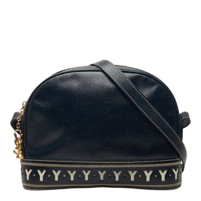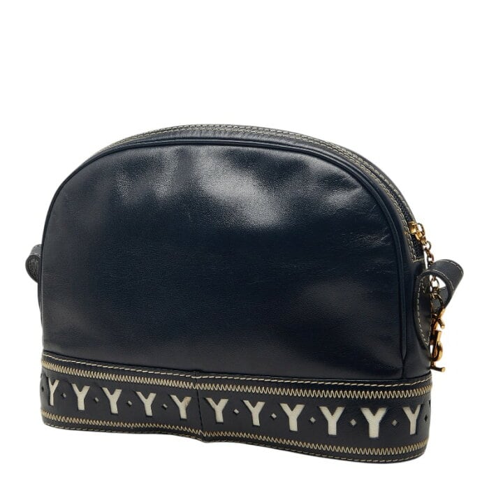サンローラン ヴィンテージ Yカット アウト ショルダーバッグ ネイビー レザー レディース SAINT LAURENT 【中古】
