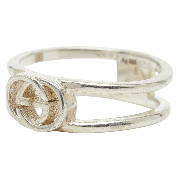 グッチ インターロッキングG ワイドオープンバンド リング 指輪 #8 SV925 シルバー レディース GUCCI 【中古】
