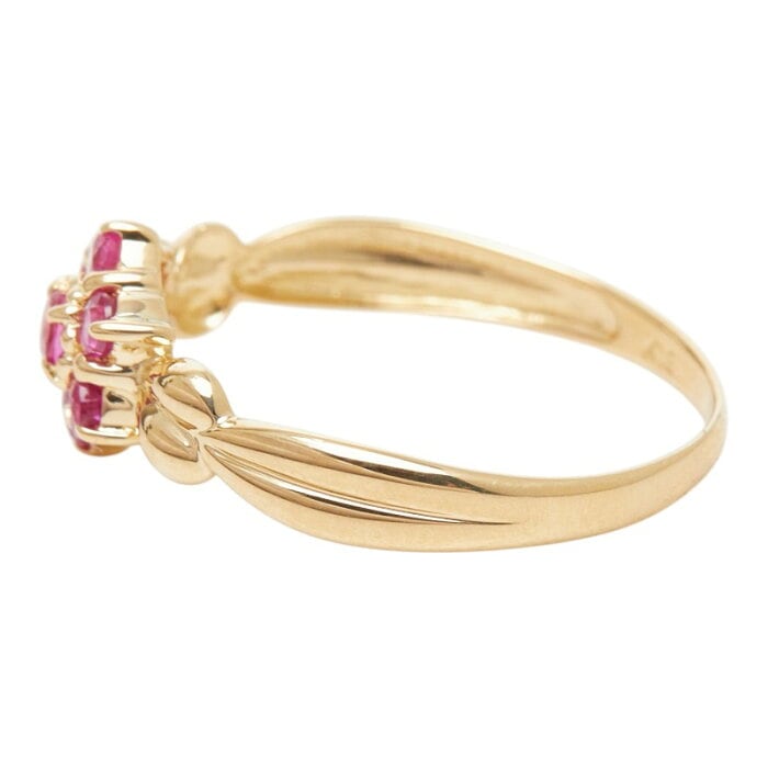 K18YG イエローゴールド ルビー フラワーモチーフ リング 指輪 レディース 11号 【中古】