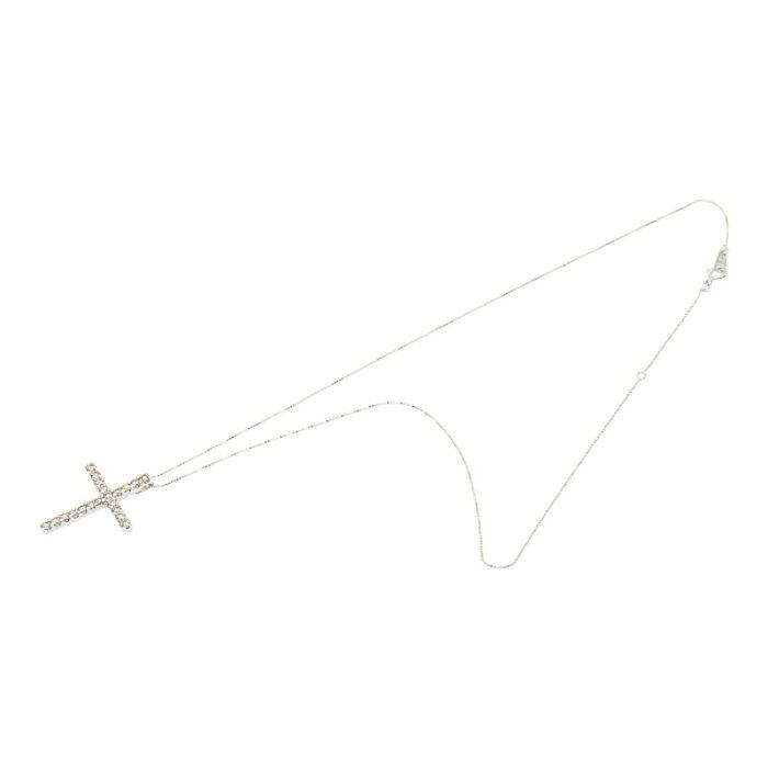 K14WG ホワイトゴールド ダイヤ0.70ct クロスモチーフ ペンダント ネックレス レディース 【中古】