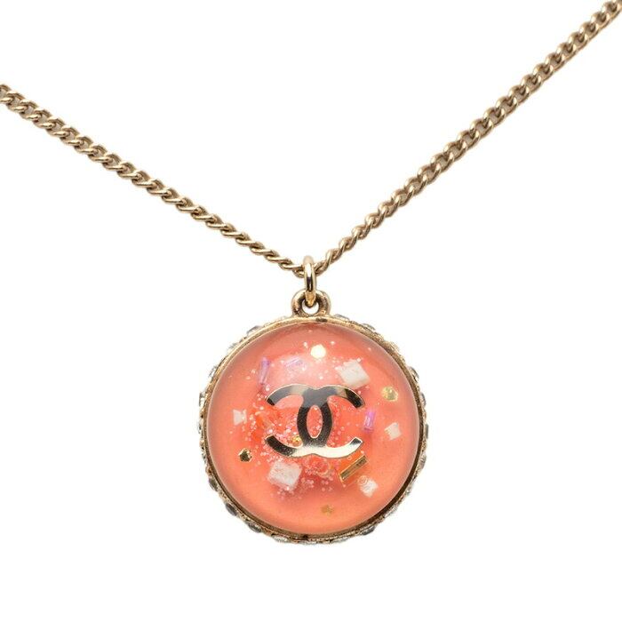 シャネル ココマーク ドーム ネックレス ゴールド ピンク メッキ ラインストーン レディース CHANEL 【中古】