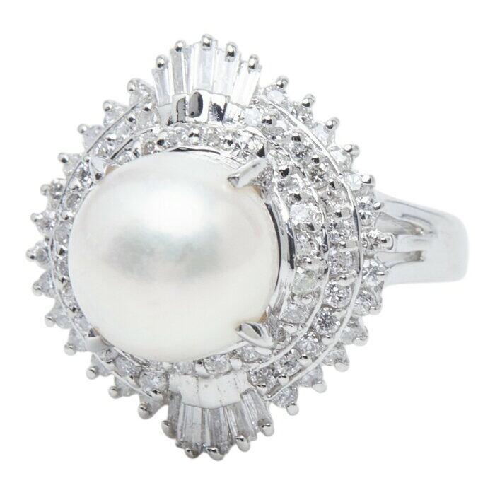 真珠 Pt900 プラチナ アコヤパール9mm ダイヤ0.70ct リング 指輪 レディース 11.5号 【中古】