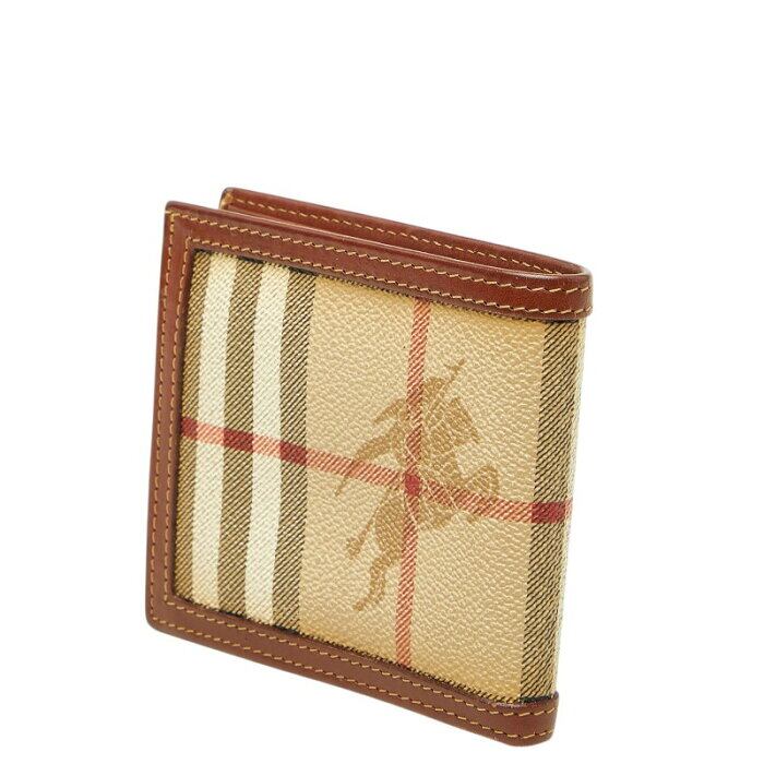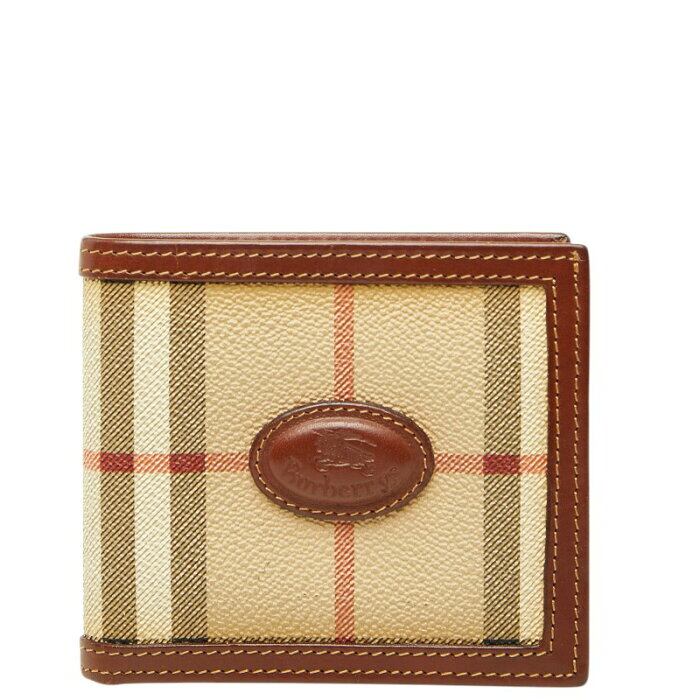 バーバリー ノバチェック 二つ折り財布 ベージュ マルチカラー PVC レザー レディース BURBERRY 【中古】