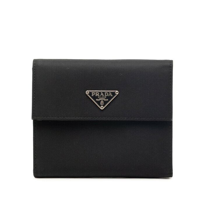 プラダ 三角ロゴプレート 三つ折り財布 M170 ネロ ブラック ナイロン レザー レディース PRADA 【中古】