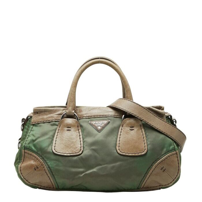 プラダ 三角ロゴプレート ハンドバッグ ショルダーバッグ 2WAY カーキグリーン系 ナイロン レザー レディース PRADA 【中古】