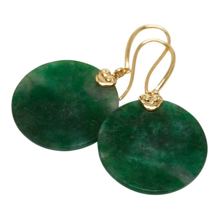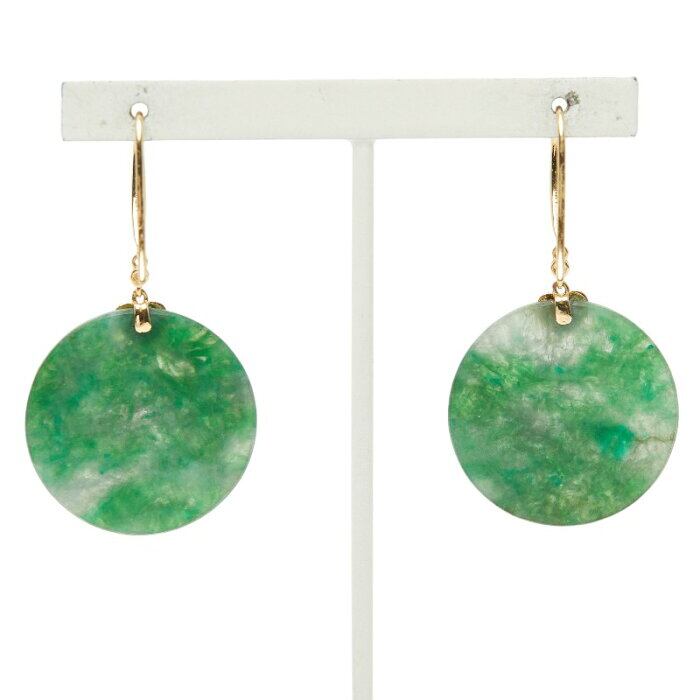 ヒスイ K18YG イエローゴールド ネフライト(翡翠) ダイヤ ピアス レディース 【中古】