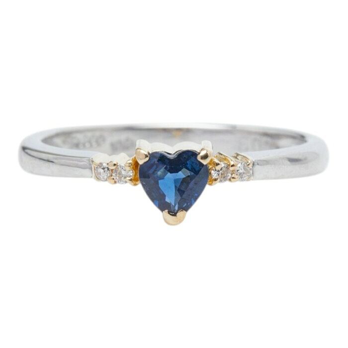 Pt900 プラチナ K18YG イエローゴールド Pt900ベース/K18コンビ サファイア ダイヤ0.03ct リング 指輪 レディース 9号 【中古】