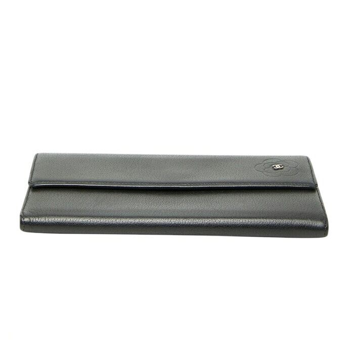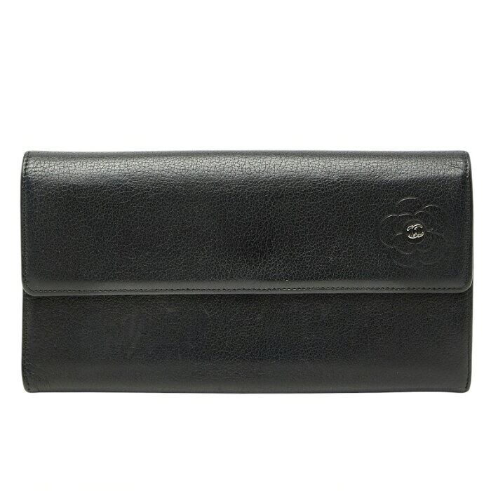 シャネル カメリア ココマーク 二つ折り 長財布 ブラック レザー レディース CHANEL 【中古】
