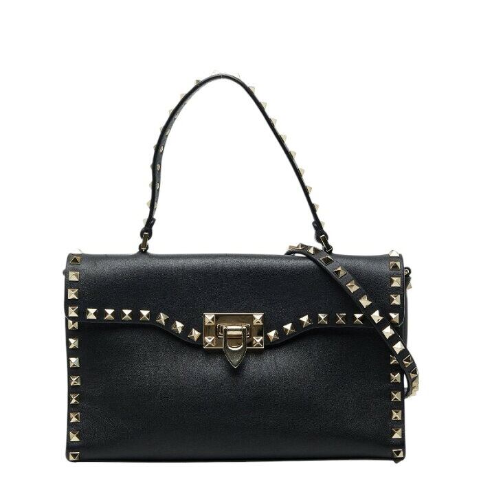 ヴァレンティノ ロックスタッズ ハンドバッグ ショルダーバッグ 2WAY ブラック レザー レディース VALENTINO 【中古】