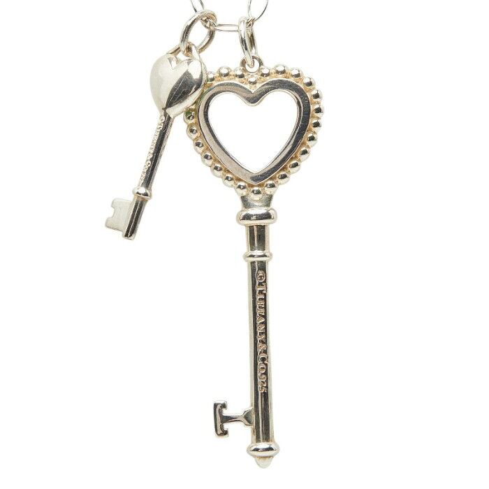 ティファニー ハートキー モチーフ ロングネックレス シルバー ティファニーブルー SV925 シルバー エナメル レディース TIFFANY&Co. 【中古】