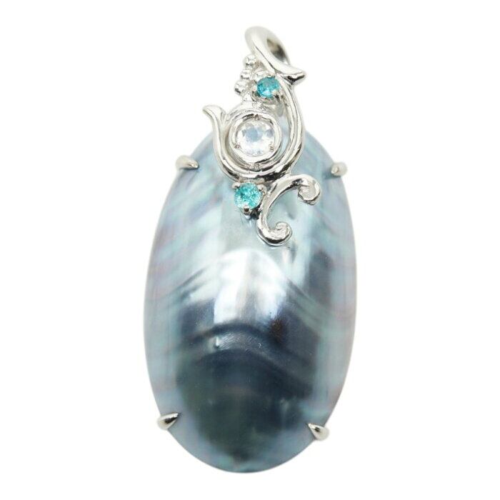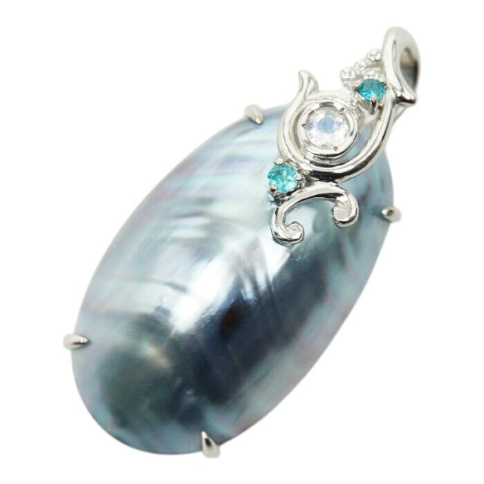 真珠 K18WG ホワイトゴールド マベパール29.6×17.1×mm ムーンストーン0.09ct パライバトルマリン0.06ct ペンダントトップ レディース 【中古】