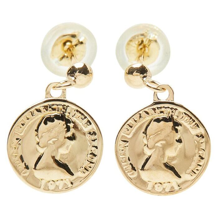 K18YG イエローゴールド エリザベス2世 金貨モチーフ ピアス レディース 【中古】
