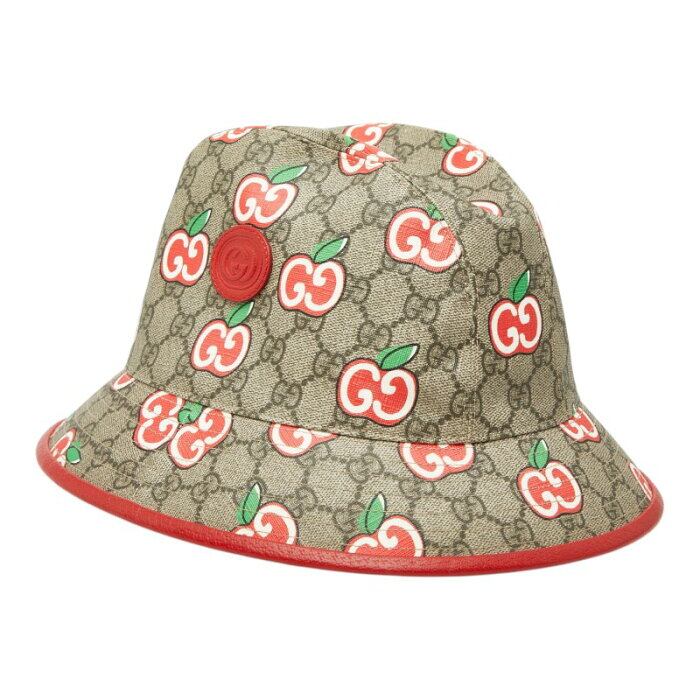 グッチ GGアップル フェドラハット ハット サイズ58 L ベージュ レッド PVC レザー メンズ GUCCI 【中古】