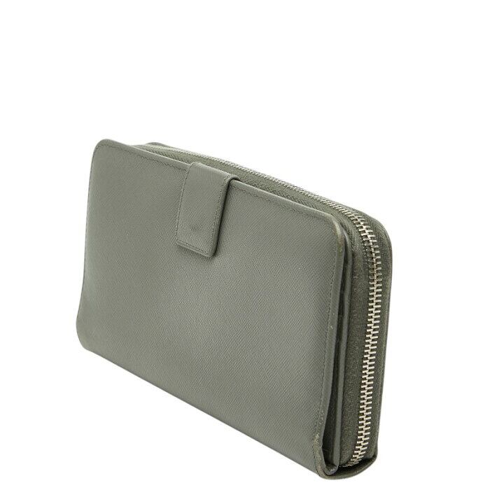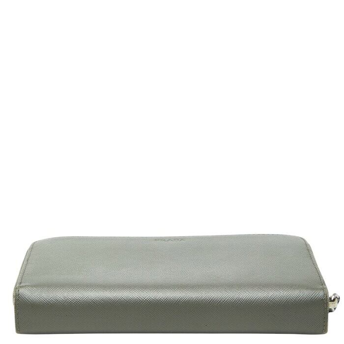 プラダ ロゴ ラウンドファスナー 長財布 2M1411 グレー サフィアーノレザー メンズ PRADA 【中古】
