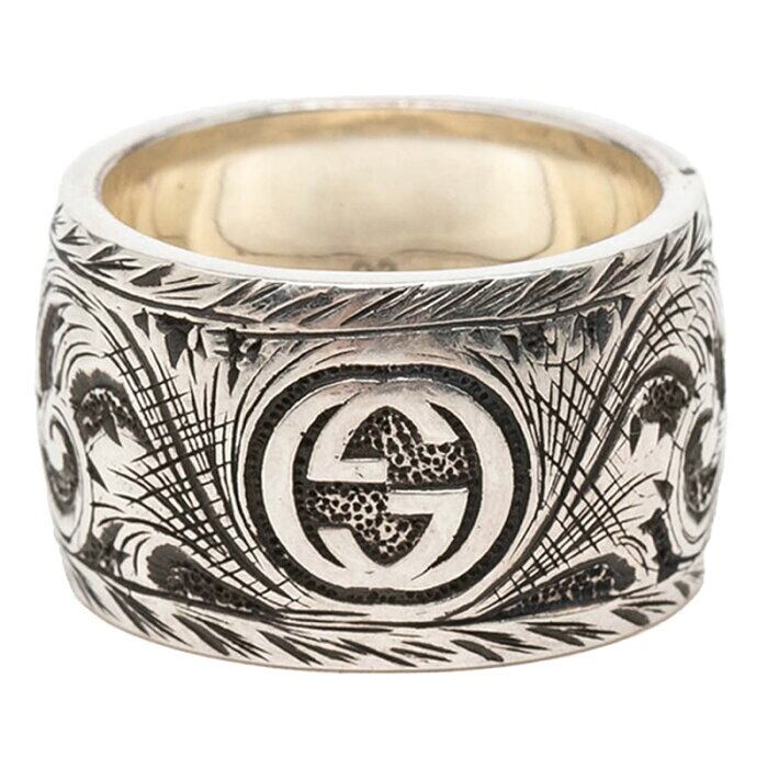 グッチ タイガーヘッド ガーデン リング 指輪 #23 シルバー グリーン SV925 シルバー マカライト メンズ GUCCI 【中古】