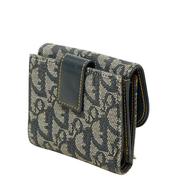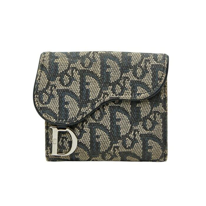 ディオール トロッター オブリーク サドル 二つ折り財布 ネイビー キャンバス レディース Dior 【中古】