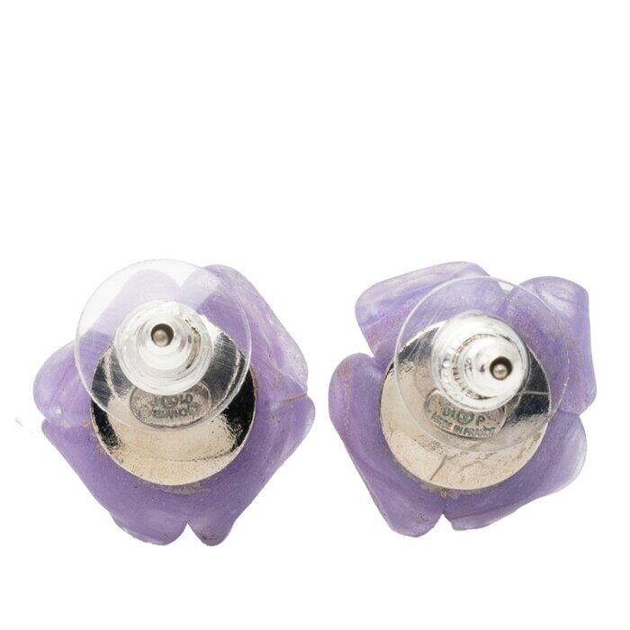 シャネル カメリア フラワー スタッドピアス 01P パープル メタル プラスチック レディース CHANEL 【中古】