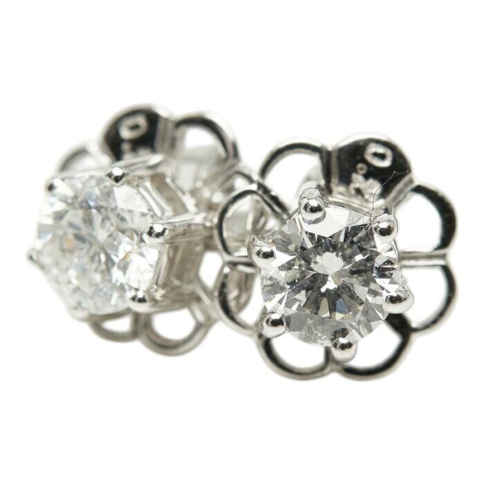 K18WG ホワイトゴールド ダイヤ0.50ct フラワーモチーフ ピアス レディース 【中古】