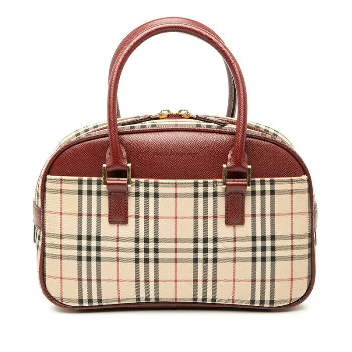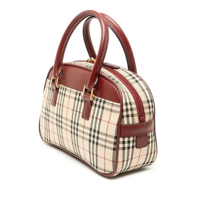 バーバリー ノバチェック ハンドバッグ ミニボストンバッグ ベージュ マルチカラー キャンバス レザー レディース BURBERRY 【中古】