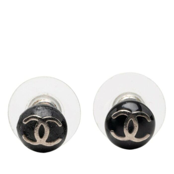 シャネル ココマーク スタッドピアス 03C シルバー ブラック メタル エナメル レディース CHANEL 【中古】