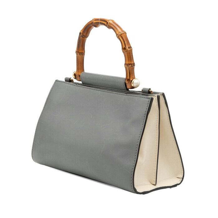 グッチ バンブー パール ハンドバッグ ショルダーバッグ 2WAY 470271 グレー アイボリー レザー レディース GUCCI 【中古】