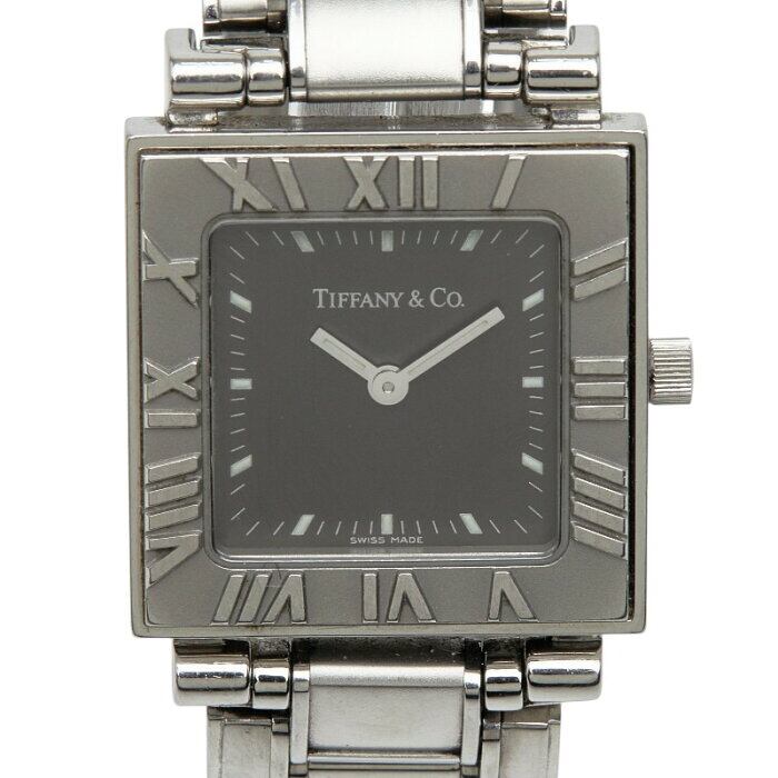 ティファニー アトラス 腕時計 クオーツ グレー文字盤 ステンレススチール レディース TIFFANY&Co. 【中古】