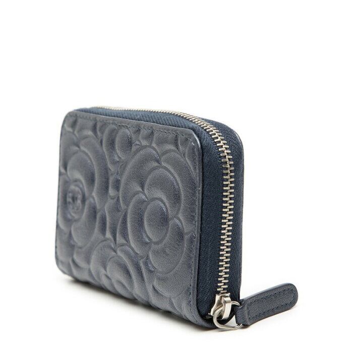 シャネル カメリア ココマーク コインケース 小銭入れ パープル ネイビー レザー レディース CHANEL 【中古】